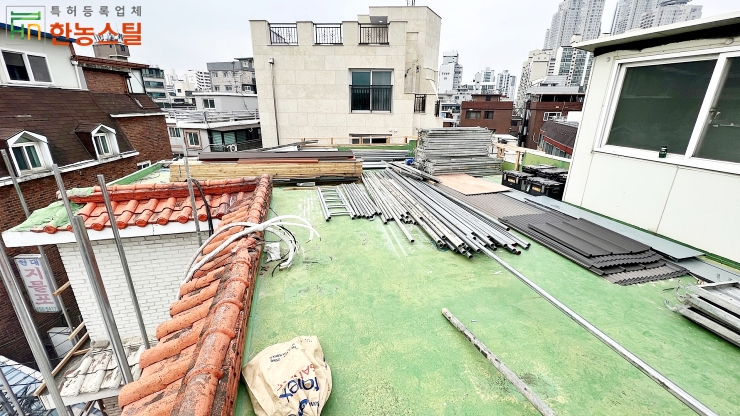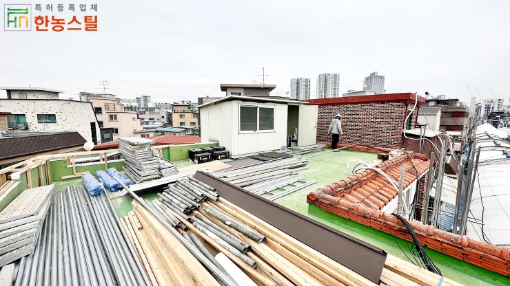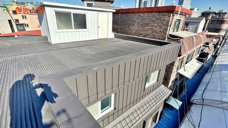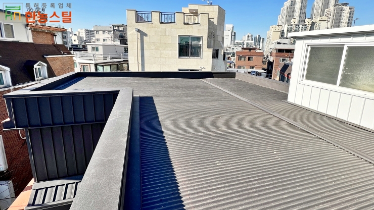 옥상 전체에 칼라강판을 시공하면 끝이에요!