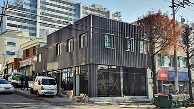 상가주택 칼라강판 멀티스톤